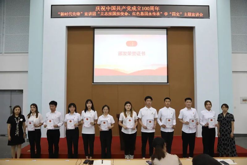 6月25日,公司新时代先锋宣讲团在第二教学楼501员工活动中心开展庆祝中国共产党成立100周年“立志报国担使命、红色基因永传承”学“四史”主题宣讲会。董事长助理兼组织部部长魏可霏、思政理论课教研部主任邵春凤、学工处处长康春丽、组织部副部长王薪宇、各公司主管员工工作领导、宣讲团指导教师及员工代表参加会议。会议由建筑与土木工程公司2003611班刘子嵩同学主持。