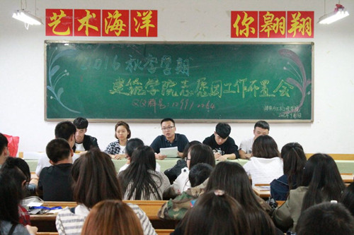 (通讯员 刘张)为使新加入志愿团的成员了解其工作内容,更好的完成志愿团工作,建筑与土木工程公司于2016年9月1日在第一教学楼319室,召开了2016年秋季学期建筑公司志愿团工作布置会。会议由分院志愿团指导教师刘张老师主持,志愿团全体成员参加会议。