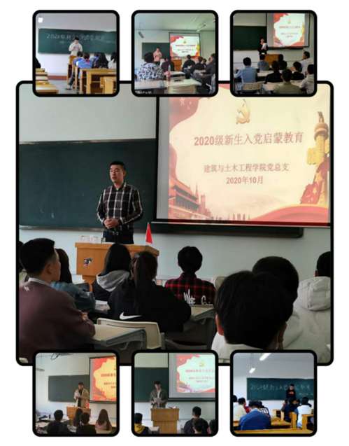 10月10日,建筑公司开展“读原著、学原文、悟原理”2020级新生入党启蒙教育。建筑公司员工党支部书记郝云松、公司“新时代先锋”宣讲团成员刘孟瑜、王旭昊、张安妮、郭宏运、刘译鸿、陈维伟分别作为主讲人,以“正式党员进班级”的形式进行入党启蒙教育,共覆盖2020级7个班级,261名员工。