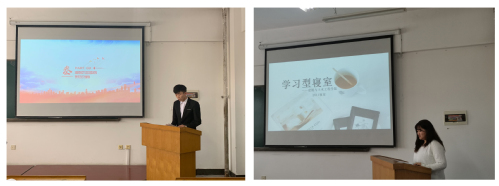 建筑与土木工程公司员工会纪检生活部部长曲行伟宣读文明寝室评比方案,详细讲解了内务达标寝室、文明寝室、标兵寝室、学习型寝室、学霸寝室的评比标准。