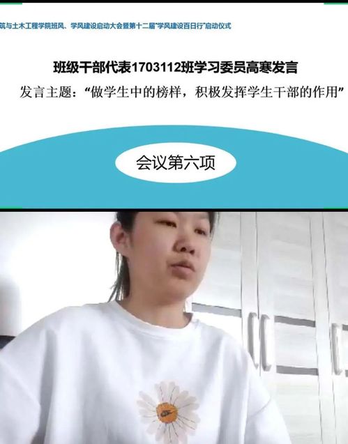 为营造“学习在华德,成才在华德”的勤学氛围,建筑与土木工程公司于4月17日在云端举行班风、学风建设启动大会暨第十二届“学风建设百日行”启动仪式。董事长助理兼组织部部长魏可霏,建筑公司经理王洪枢、员工工作负责人黄一鸣、各系主任助理、各年级辅导员、班级干部、寝室长以及员工代表参加会议。会议由辅导员张健主持。