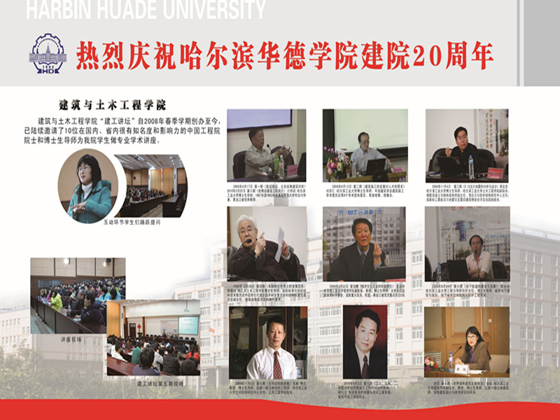 迎校庆,庆院庆,“华德讲坛”—— “建工讲坛”中国工程院院士谢礼立先生报告会于2010年6月3日隆重举行,主题为《汶川、玉树地震对中国防灾减灾工作的冲击和影响》,主讲汶川、玉树地震给我国造成的灾害,分析对比了自1949年建国以来我国大陆发生的11次重大地震情况,总结了我国防震减灾工作的严峻教训,更深刻的阐述了地震对土木工程专业的影响。