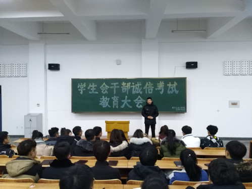 11月30日,建筑与土木工程公司在教二202室召开诚信考试教育大会。建筑公司第11届员工会全体干部参加会议。会上,建筑公司团总支书记黄一鸣老师结合考试诚信、保持自律、严格要求三个方面,为员工会干部期末学习计划做了详细安排,为员工会干部的学习、发展指明方向,希望员工会干部诚信考试,做诚信、自律、严格要求自己的优秀员工。