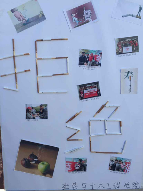 10月10日,建筑与土木工程公司团总支青年志愿服务队在第一教学楼、第五教学楼、饮食中心、图书馆以及步行街开展以“拒绝烟草 烟指非福”的志愿服务活动。