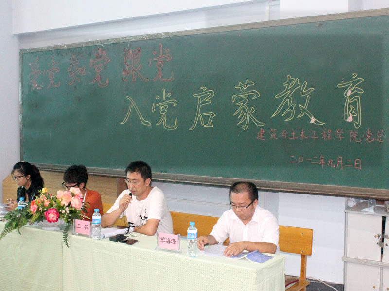再次,单海源老师就如何树立正确的入党动机、入党的基本程序、基本要求、具体步骤和注意事项等方面为2012级同学做了相应的讲解,引导同学们树立“全心全意为人民服务”的入党动机,时刻以一名党员的标准严格要求自己,用自己的实际行动接受党组织的考验。