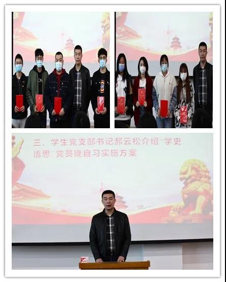 会前,与会师生观看了《永葆初心:习近平讲述百年征程》短视频。随后,与会党员代表马宇鑫,入党积极分子代表张乐鑫、赵宏帆、张朦璐依次进行发言并交流学习心得体会。
