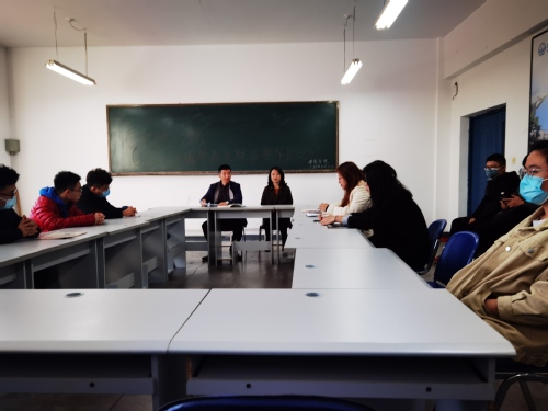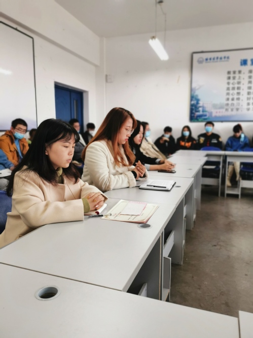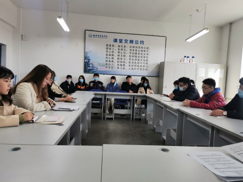 会上,1703611班田晶同学和1703311班张国旗同学针对老员工就业观、目前同学们的就业想法和就业困难进行发言。