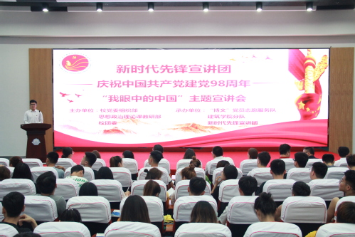 7月4日,公司纪念建党98周年“我眼中的中国”主题宣讲会在学术报告厅举行,“新时代先锋宣讲团”成员在会上进行了主题宣讲。党委书记王春雷、党委副书记邓维娜出席活动。组织部部长魏可霏、员工工作处处长康春丽、校团委书记姜琳、思想政治理论课教研部副主任邵春凤及各公司党组织书记、师生党员代表参加活动。活动由建筑与土木工程公司英才班员工孙一琛主持。