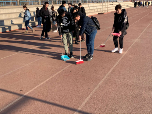 据悉,“五一”之后,建筑公司员工党支部将组织积极分子同学再次对体育场开展全面清理的义务劳动。