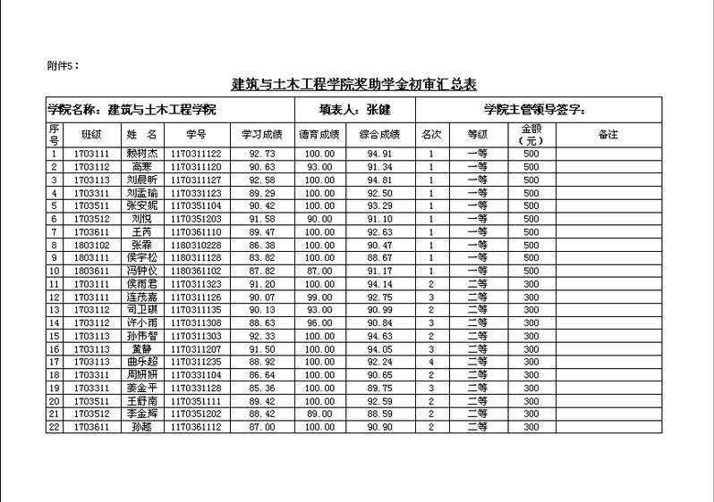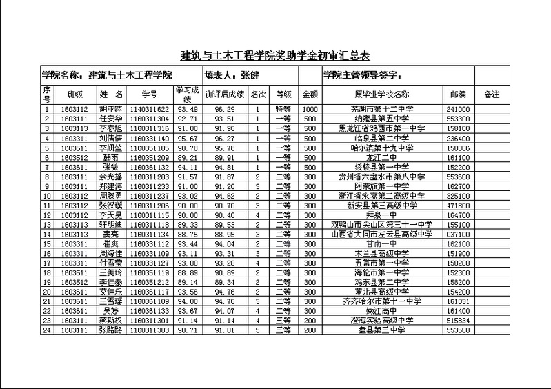 建筑与土木工程公司2019年度国家助学金、校内助学金候选人公示
