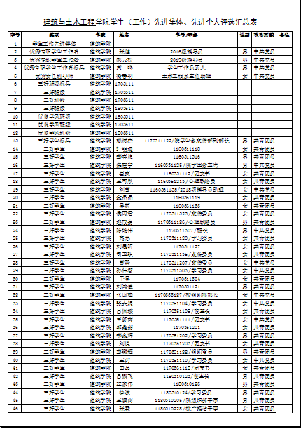 建筑与土木工程公司2019年度国家助学金、校内助学金候选人公示