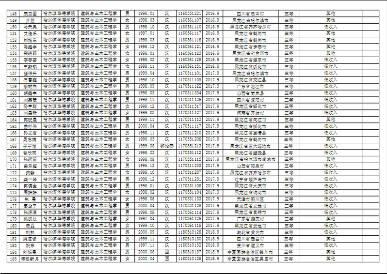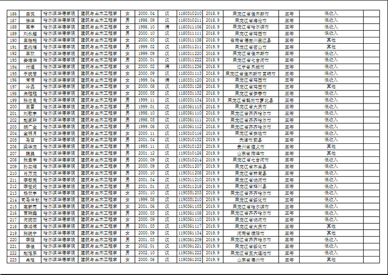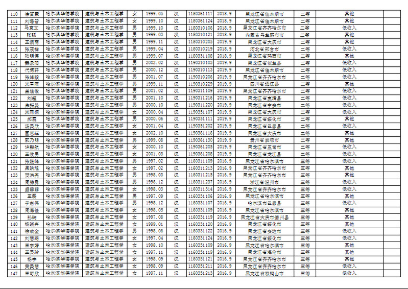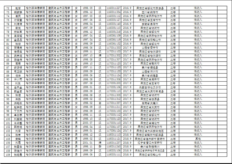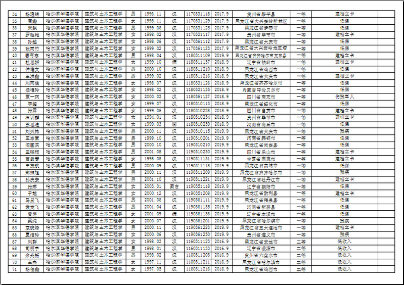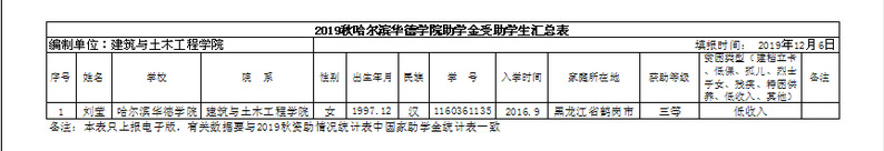 建筑与土木工程公司2019年度国家助学金、校内助学金候选人公示