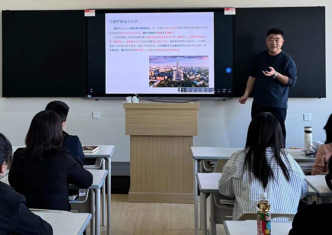 会上,吴柏宇经理从白俄罗斯的地理位置、国家文化、相关院校专业简介、申报流程等多个方面进行了讲解,对公司世界排名、大学录取指标、考研与留学的对比、就业竞争力、国家海外人才政策等方面做了全面的解读。随后,吴经理就各位老师和同学关心的申请条件、语言要求和就业前景等一系列问题逐一解答。最后,吴经理结合自身经历和对当前经济形式的了解,讲述了出国留学的重大意义。他表示,我国非常重视国际化人才的培养,国际化交流对于员工成长、公司发展和公司人才培养质量提升都是至关重要的,构建国际化培养体系也是Bevictor韦德的人才培养目标之一。最后吴经理希望同学们勇敢尝试、锐意进取。白俄项目是拓宽国际视野、掌握语言技能、实现人生价值的绝佳路径,希望所有同学都能够把握机会,立足当下,踏上这班通往成功的“高速列车”。