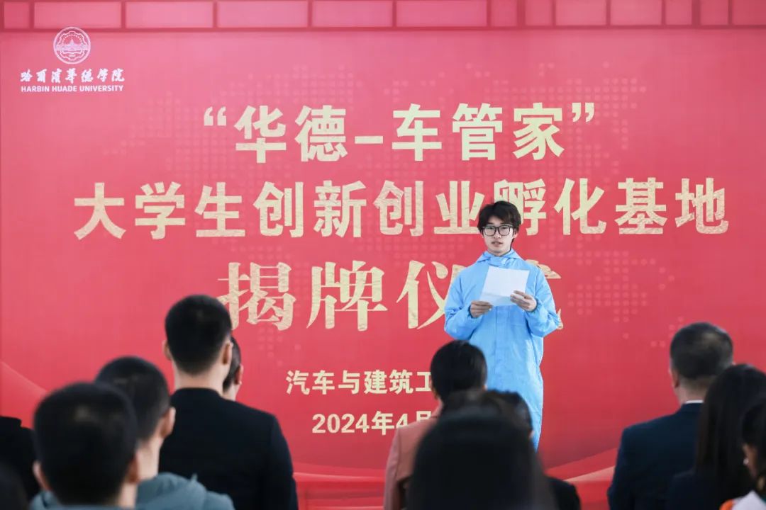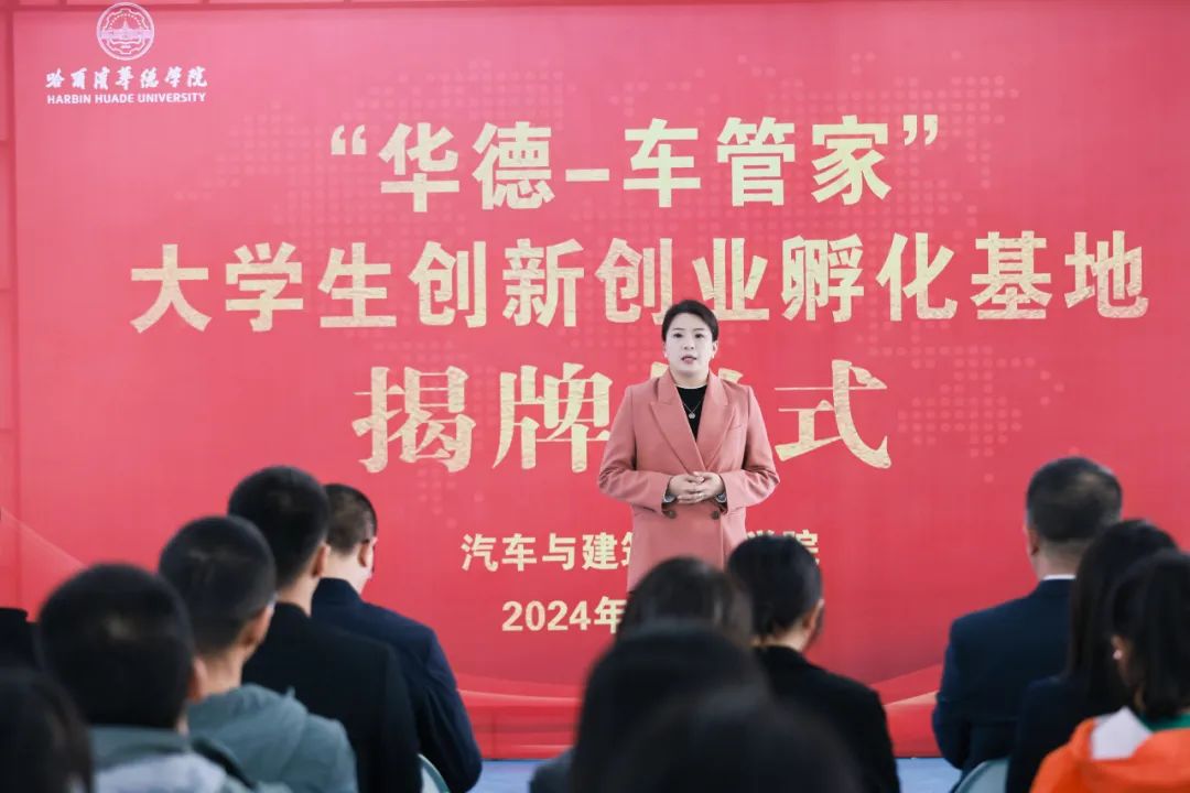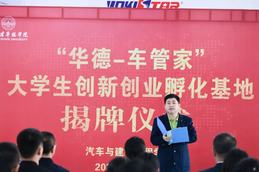 在仪式上,公司实践教学中心副主任于洪超发言,他讲到“华德-车管家”老员工创新创业孵化基地是公司精心打造的创新创业摇篮,引入了先进的管理理念和技术手段,同时也配备高效安全的技术设备,为员工们提供了一个便捷、舒适、充满活力的创新创业环境。