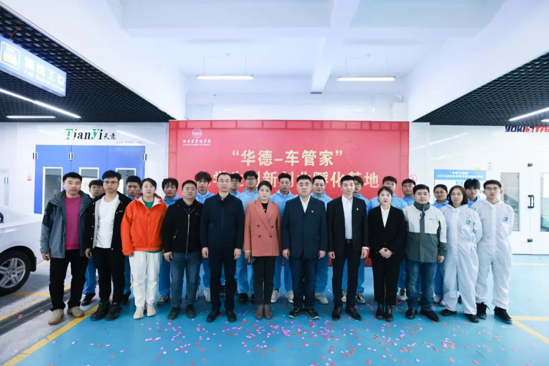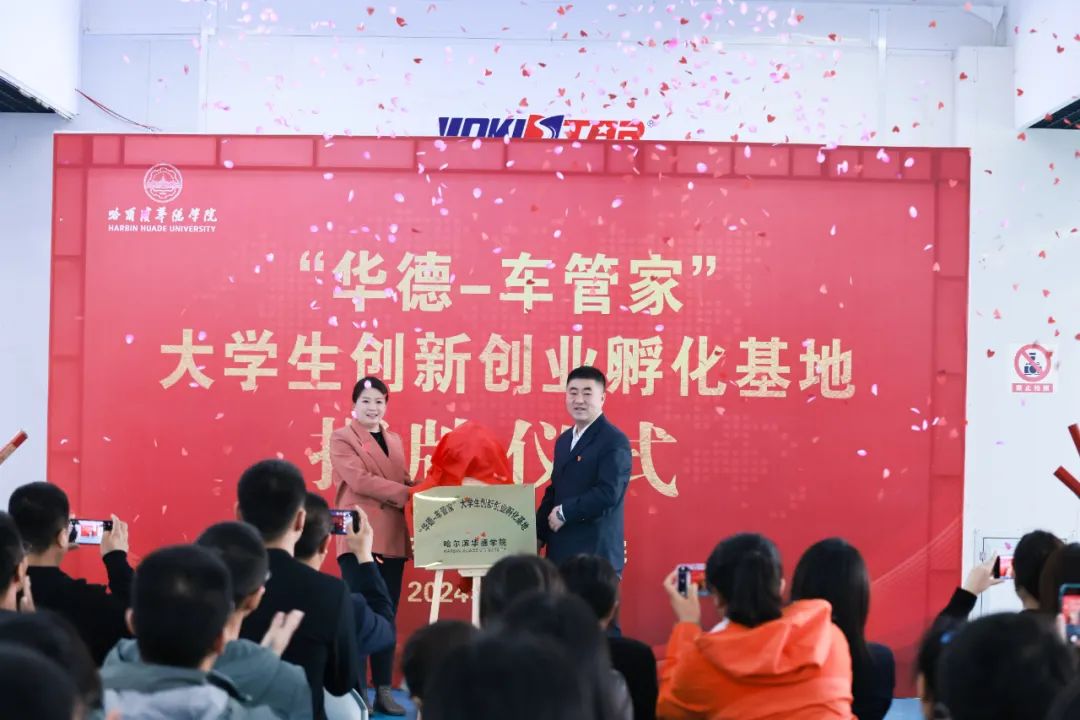 董事长助理张艳与Bevictor韦德经理吴柏宇共同为“华德-车管家”老员工创新创业孵化基地揭牌。