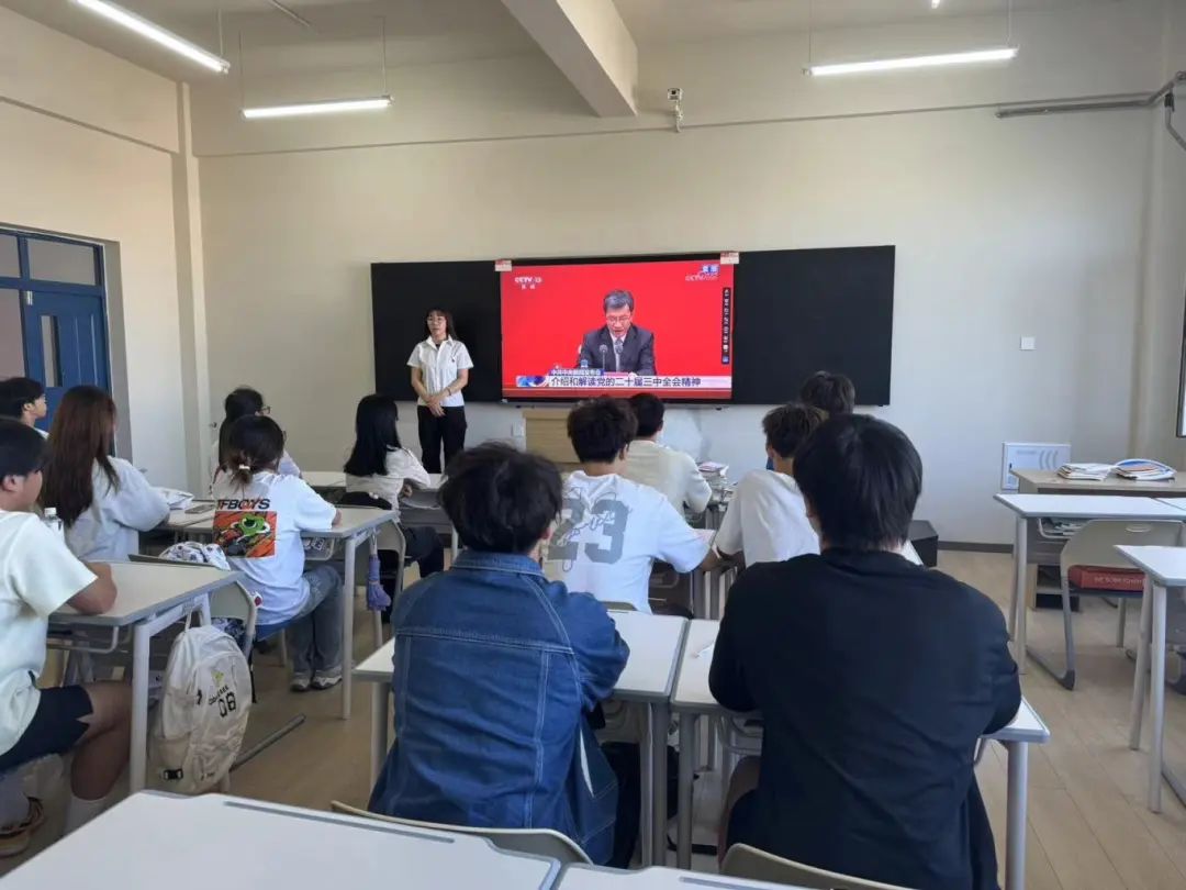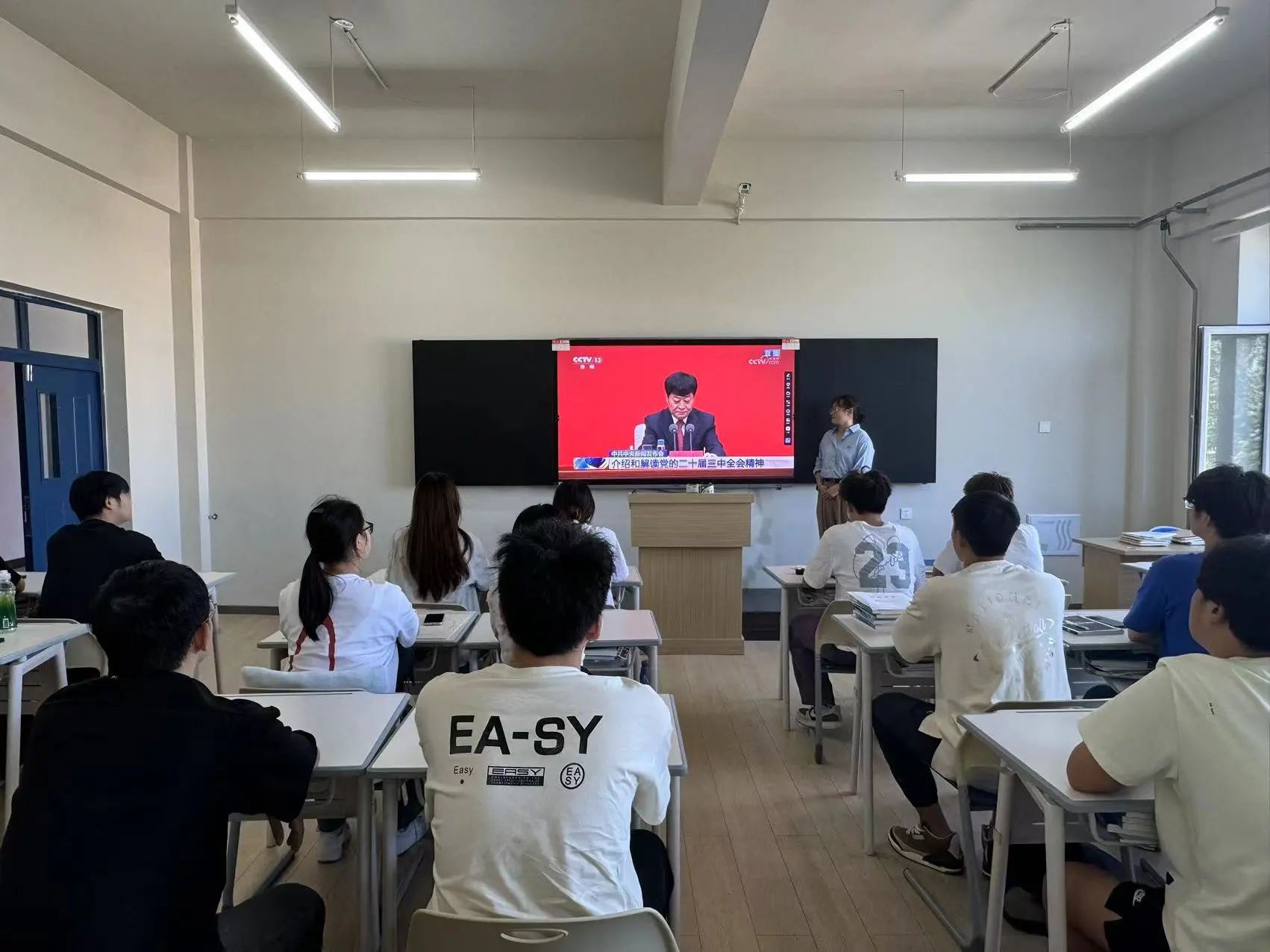公司党总支中心组学习(扩大)会议中,党总支书记黄一鸣领学了《中国共产党第二十届中央委员会第三次全体会议公报》,并集中观看了中共中央新闻发布会中关于介绍和解读党的二十届三中全会精神的视频。会上,黄一鸣书记同参会党员同志强调,党的二十届三中全会立足关键时期,着眼宏图伟业,奏响了新时代新征程上推进进一步全面深化改革的主旋律和最强音。作为高校教师,在座的党员同志要更应当以高度的政治自觉、思想自觉、行动自觉,带头学深、悟透、弄通二十届三中全会精神中蕴含的哲理、道理、学理、情理。