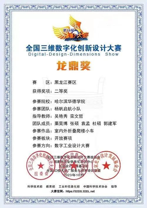 第16届全国三维数字化创新设计大赛黑龙江赛区二等奖1项;