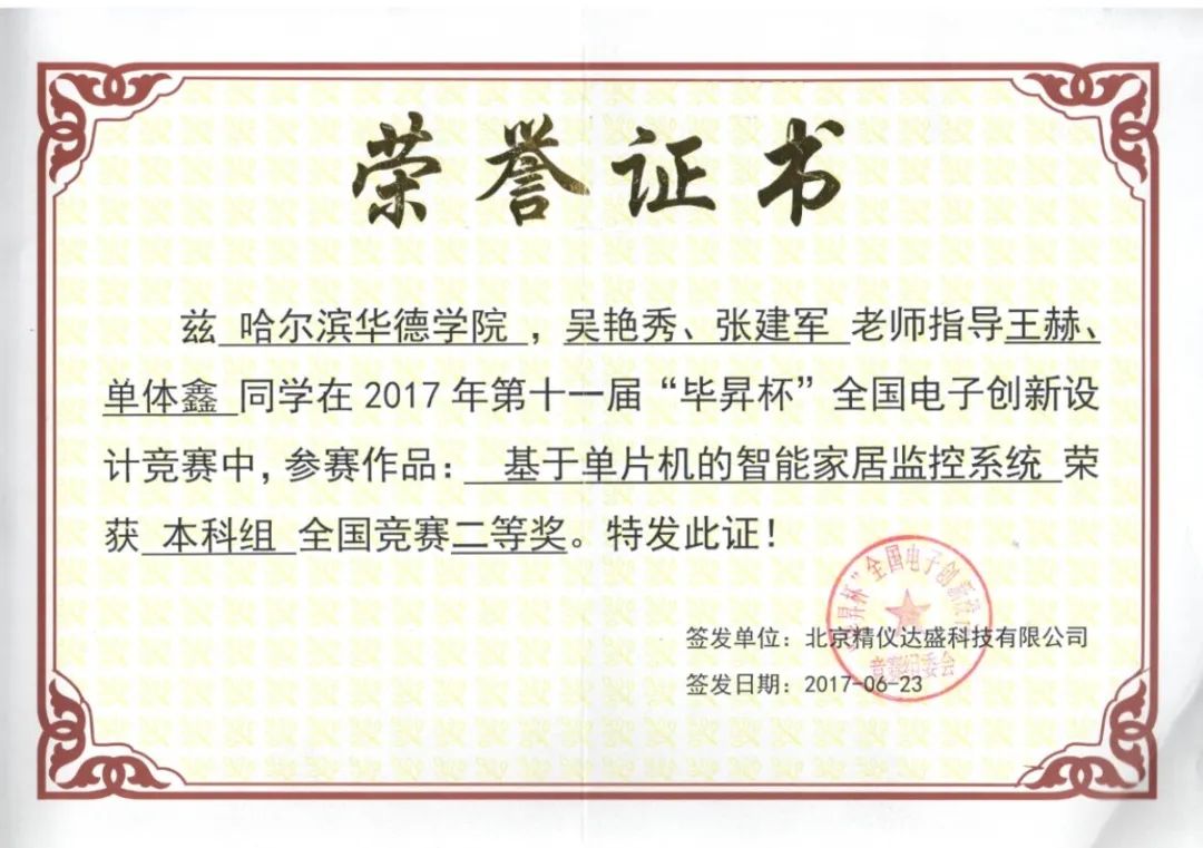 第11届“毕昇杯”全国电子创新设计竞赛国赛二等奖1项;
