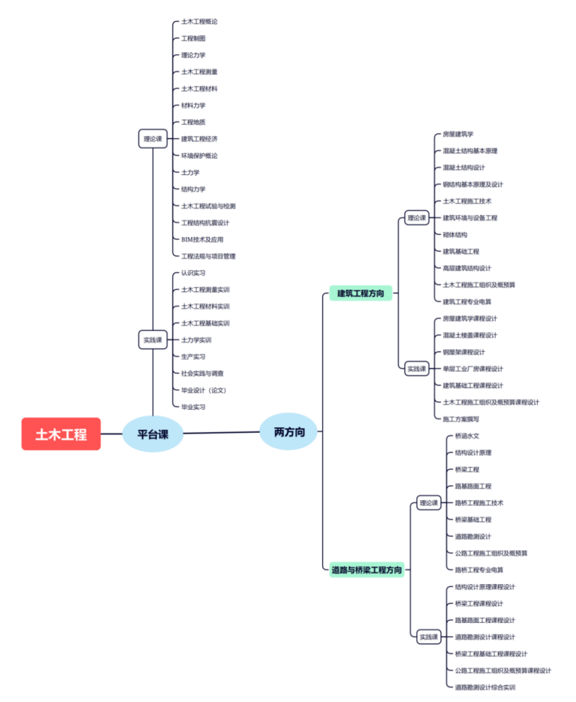 1. 概览:土木工程专业主要培养能够在建筑工程、道路与桥梁工程等基本建设领域承担土木工程勘察、设计、施工、检测、管理、投资、开发等工作,能够理解、分析、评价和解决复杂工程问题的应用型人才。
