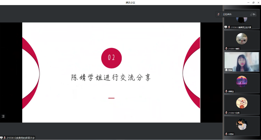 成功考取大连交通大学研究生的1902702班陈婧同学围绕院校和专业选择、备考规划、学习方法、心态调整等多方面展开分享,对考研参考书应抓的重点以及专项训练技巧方面进行分析,着重强调了平时积累与专题复习的重要性,大幅提升了同学们的考研自信心。