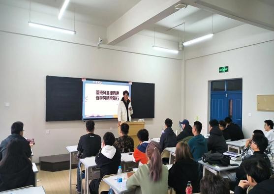 辅导员老师结合前半学期的实际,通过案例、数据等,帮助同学们分析问题,引导员工积极思考,做到“对症下药”。同时,辅导员老师强调了遵守校规校纪的重要性,呼吁同学们自觉遵守,将其内化为自身的行为准则,以端正的学习态度、严格的课堂纪律,共同营造良好的课堂氛围,创建优良班风学风。