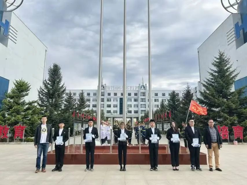 伴随着雄壮的国歌声,五星红旗冉冉升起,现场师生行注目礼