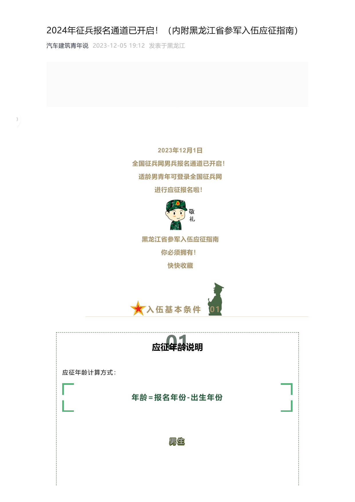 2024年征兵报名通道已开启!(内附黑龙江省参军入伍应征指南)