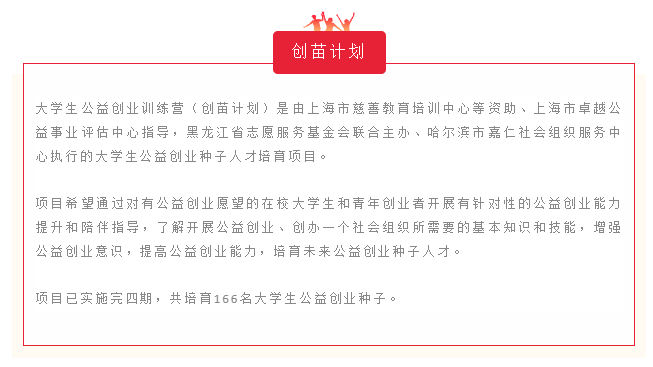 据项目执行方嘉仁公益负责人介绍,老员工公益创业训练营/创苗计划是机构回应使命针对老员工开发设计的培育种子人才的公益项目。