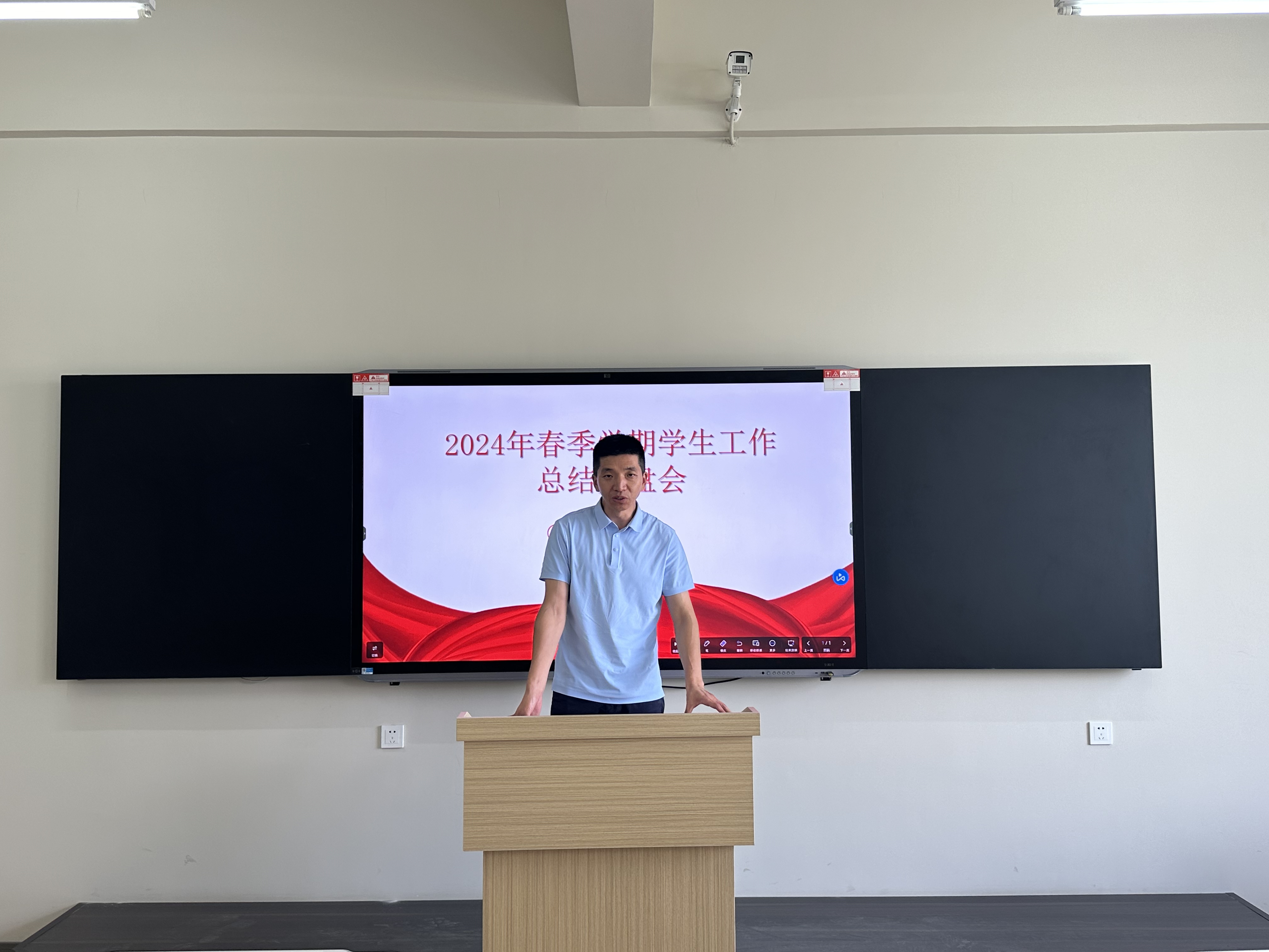 最后,黄一鸣主任进行总结讲话。他充分肯定了全体辅导员在本学期工作中所付出的努力和取得的成绩,同时对下半年工作进行安排部署。他强调,一要时刻关注暑期员工动态,做好思想教育和安全教育工作;二要指导员工做好社会实践、志愿服务工作,提升综合素质;三要提前做好下一学期的工作规划,确保在审核评估阶段各项工作顺利开展。