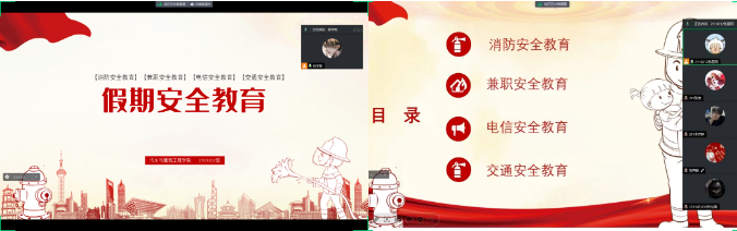班会上,各年级辅导员老师通过讲解和播放安全教育短片等方式,围绕交通安全、消防安全、预防电信诈骗、兼职安全等方面进行安全教育引导。帮助员工了解各类安全知识以及掌握应对危险时的处理方法,增强同学们的自我防范意识。