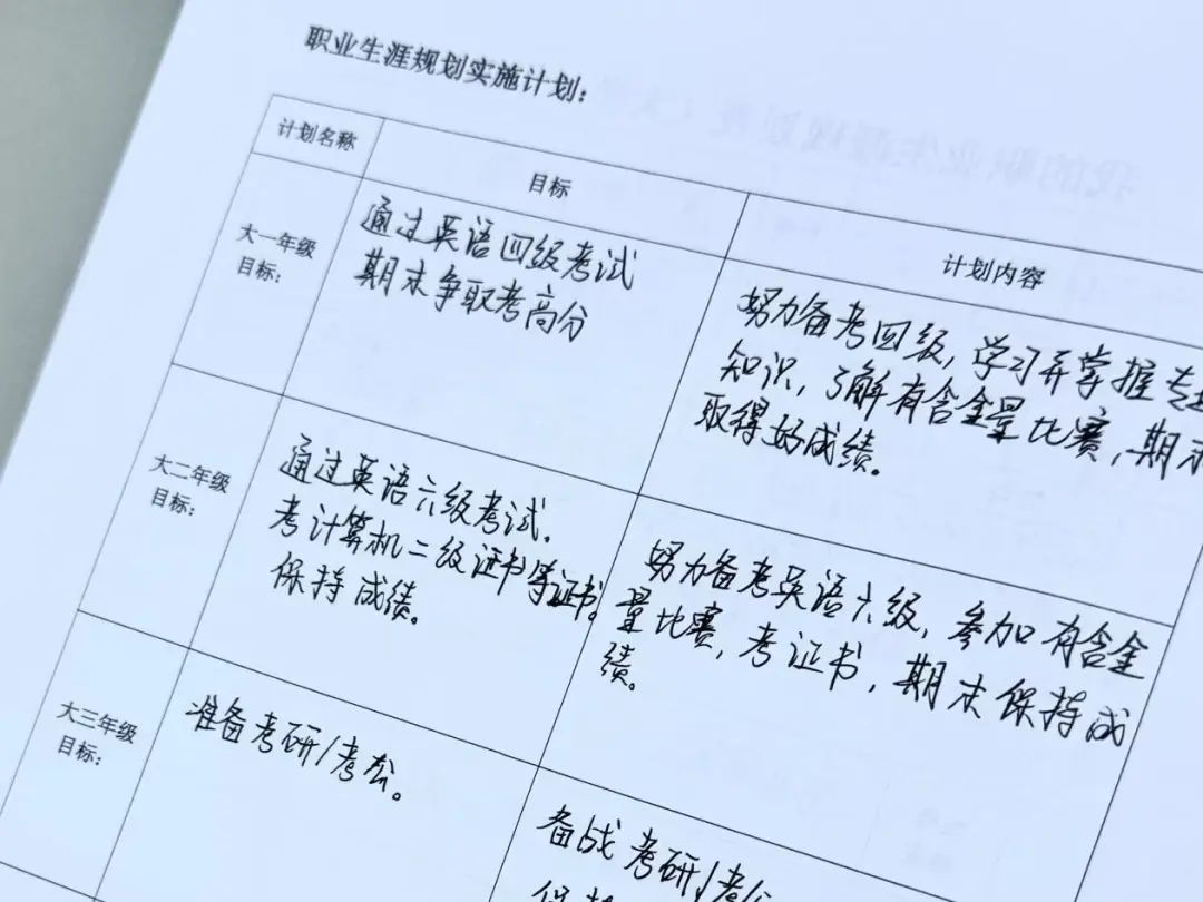 接着,辅导员老师们向新生们分发了一份精心制作的《职业生涯规划表》。这份表格被分为四个部分,分别对应大学四年的不同阶段。每个部分都详细列出了学业目标、技能提升、实践活动、职业探索等多个维度,旨在帮助新生们从多维度、全方位地规划自己的老员工活。老师们鼓励同学们认真填写这份表格,不仅要设定一些短期且可实现的目标,更要勇于展望长远的未来,将个人的梦想与公司的培养目标紧密结合在一起。