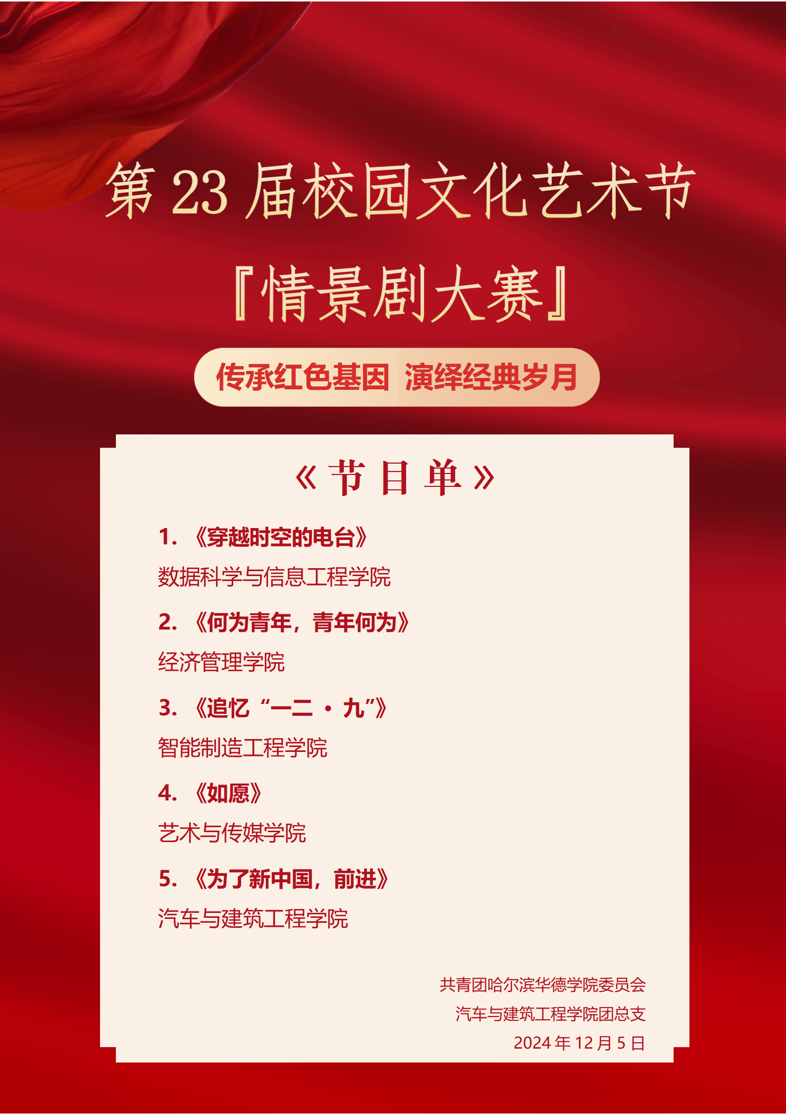 七十五载盛世华夏,河清海晏,物阜民丰。欣逢盛世,吾辈青年当以史为鉴,缅怀先辈之勋绩,弘扬民族之精神,展现大国之神韵。今以情景剧之形式,演绎历史之风云变幻,再现英雄之风采飞扬。警醒吾辈青年应当不忘来时路,脚踏新征程,迈进新时代。