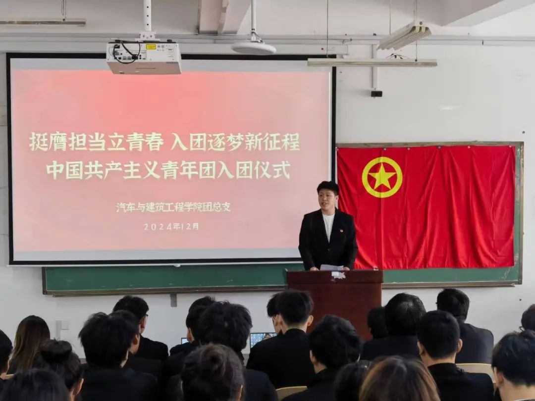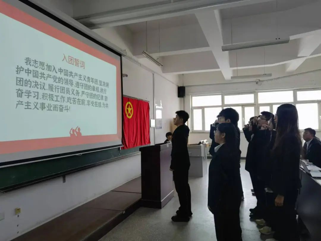 在组织部负责人马煜杰的带领下,全体新团员庄严宣誓。新团员们高举右拳,声音洪亮而坚定,誓言铿锵有力。