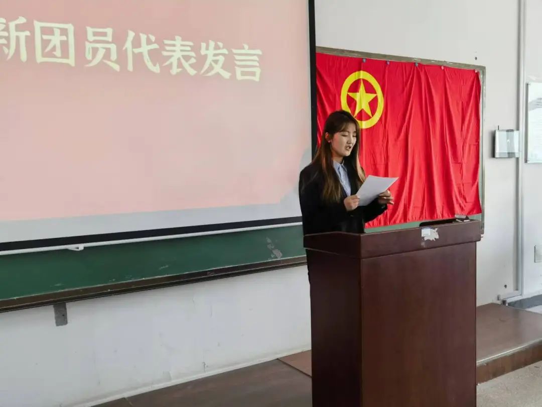 新团员代表修聪慧同学发言,她表示将以身作则,努力在学习和生活中发挥模范带头作用,为共青团的事业贡献自己的一份力量。