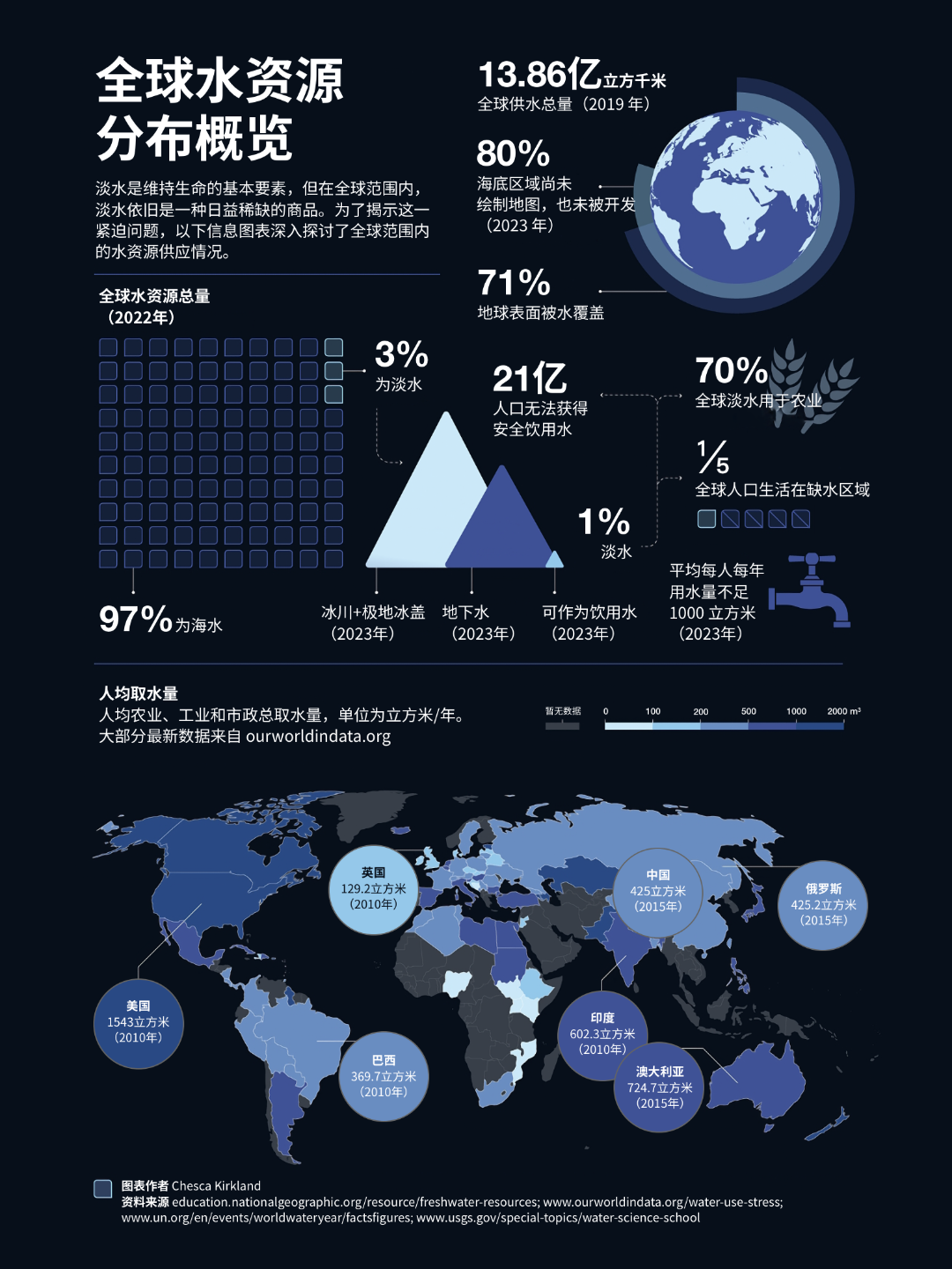 -全球失衡:巴西拥有世界12%的淡水资源,而也门人均用水量不足马桶冲水量的1/3;