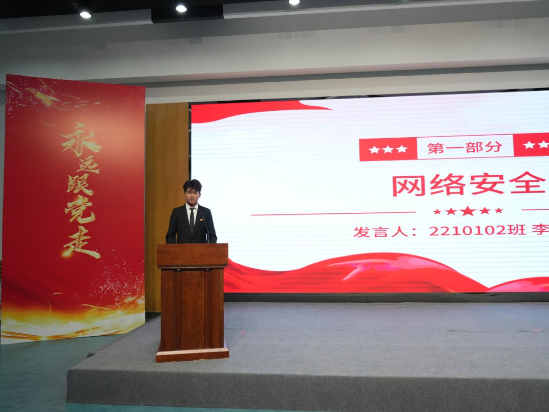 会上,员工骨干2210102班李云龙、2010101班薛铭辉、2103103班邓嘉雨、2003102班刘晨、2110212班李楠分别从网络安全、交通安全、假期安全、反诈安全和消防安全5个方面进行宣讲,宣讲采取法律法规、案例、数据、视频等多种形式,丰富宣讲内容、创新宣讲形式。通过大家的讲解,让在场同学们牢固树立安全意识,提高安全防范能力,形成人人讲安全,事事想安全的良好氛围。