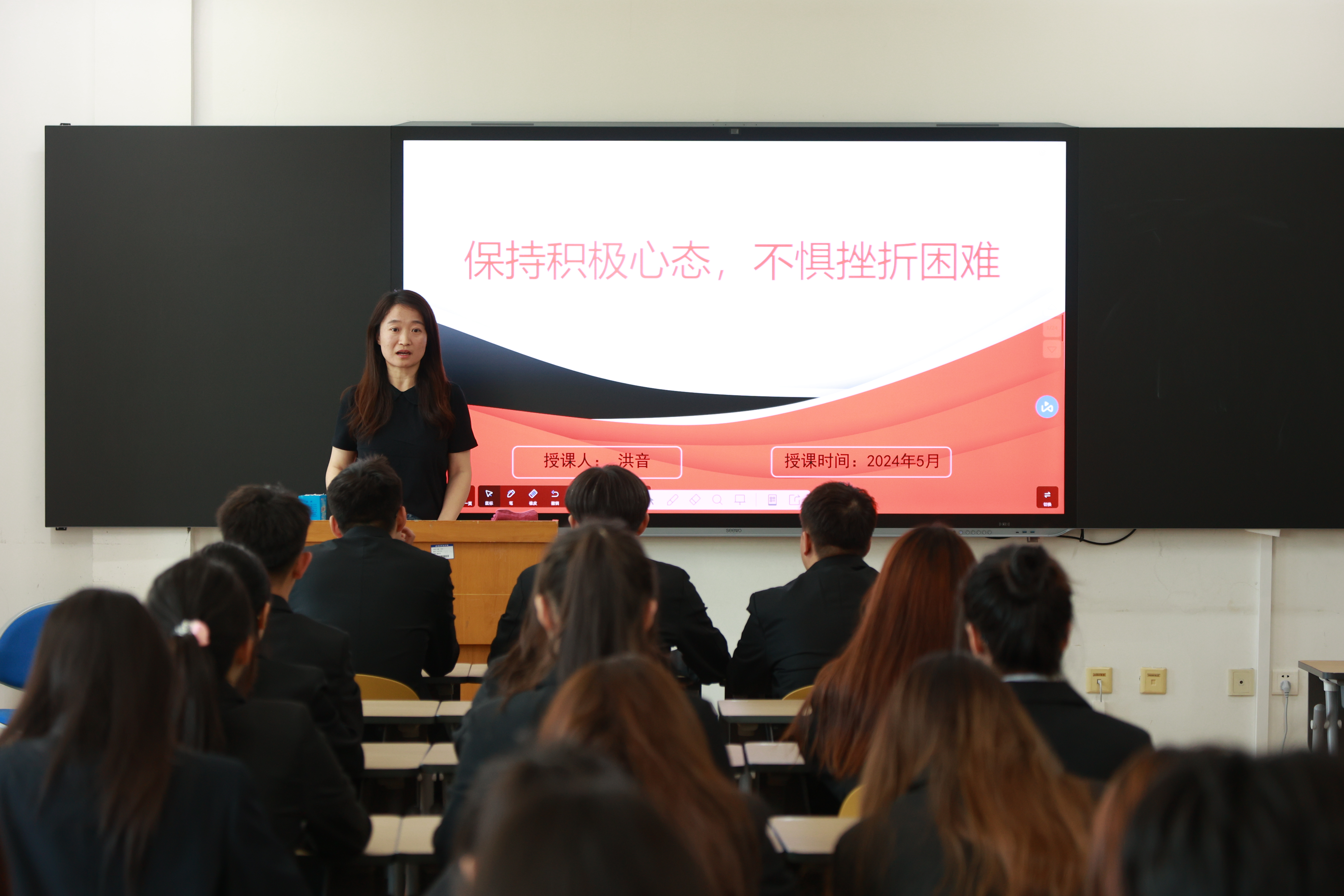 课程中,洪音老师围绕“什么是积极心态,如何保持积极心态,怎样用积极心态面对学习、工作和生活”展开讲解。结合案例让同学们更加深刻的认识到要以积极阳光的心态面对学习、工作与生活。她与同学们共同探讨如何在成长道路上以坚定的信念和积极的心态应对各种挑战,同学们积极参与讨论,分享自己在学习和生活中遭遇挫折的经历,以及如何在困境中调整心态、寻找突破的方法。