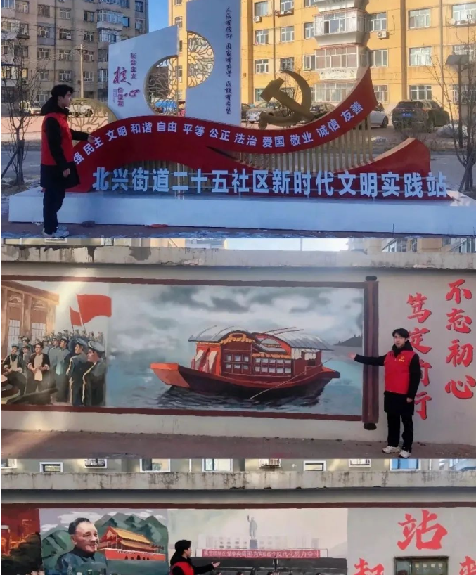 2月12日,志愿服务队以北兴街道二十五社区新时代文明实践站的“不忘初心,笃定前行”墙绘为书,团队成员充分运用所学知识,将理论与实践相结合,围绕中国共产党的伟大历程,阐述了红船精神、井冈山精神、长征精神、延安精神等中国共产党精神谱系开展红色文化宣讲活动,为弘扬伟大建党精神贡献青春力量。
