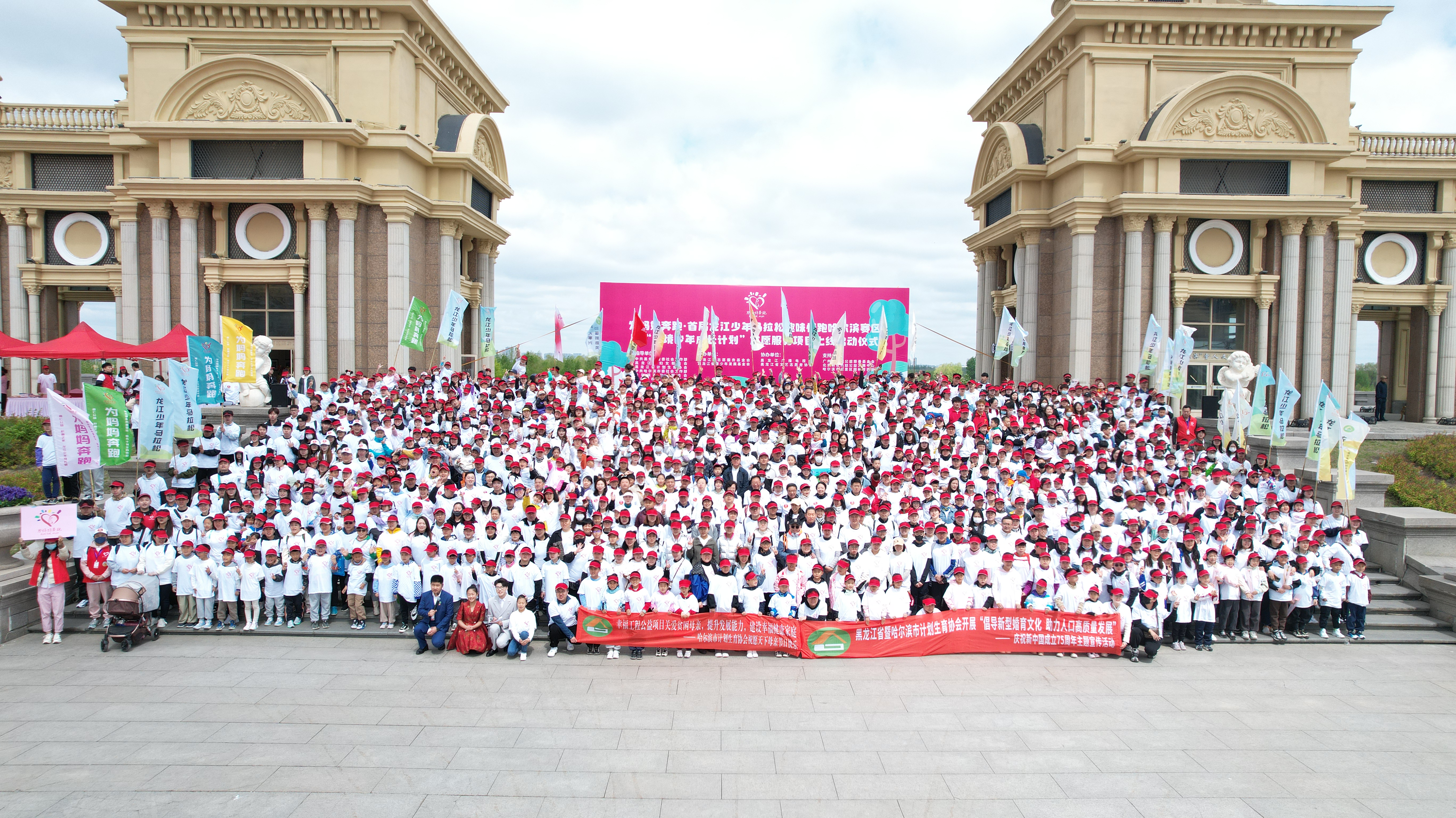 首届龙江少年马拉松趣味慢跑万人公益活动起点位于哈尔滨群力音乐走廊广场,每200 人一个方队,每隔 10 分钟依次出发,最终抵达阳明滩大桥,全程共计3公里。