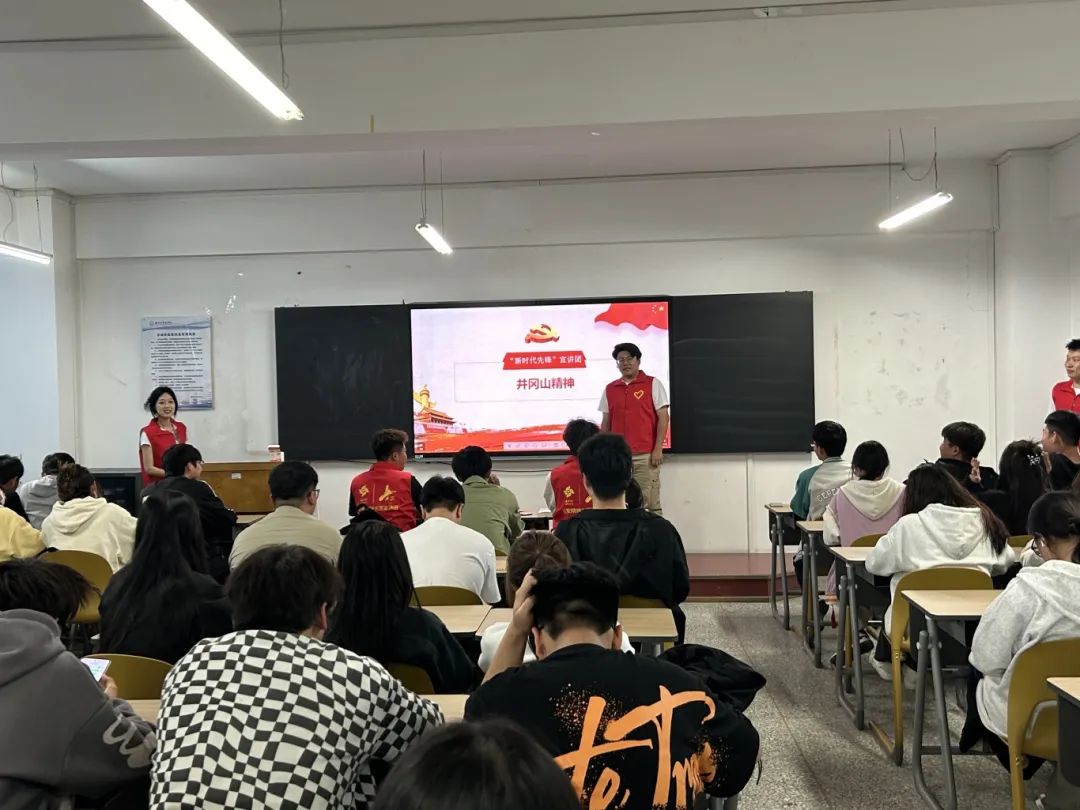 5月27日,“新时代先锋”宣讲团在教四402开展“井冈山精神”理论宣讲。宣讲由“新时代先锋”宣讲团团长周信飞主讲,2303311、2303312班全体同学参与学习。