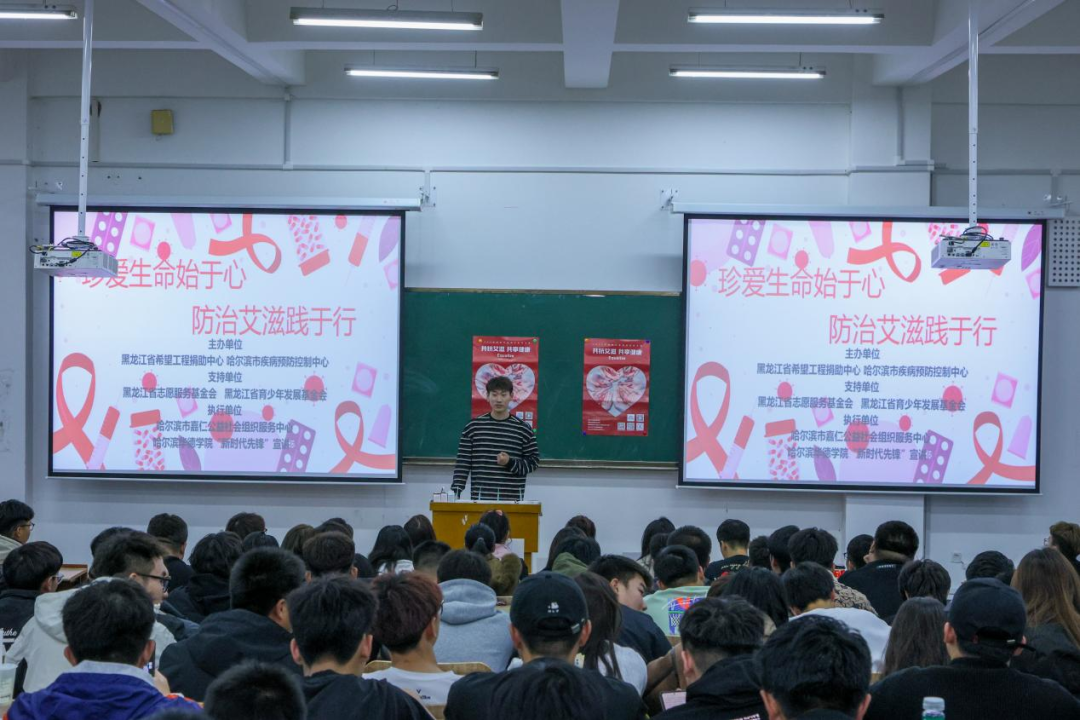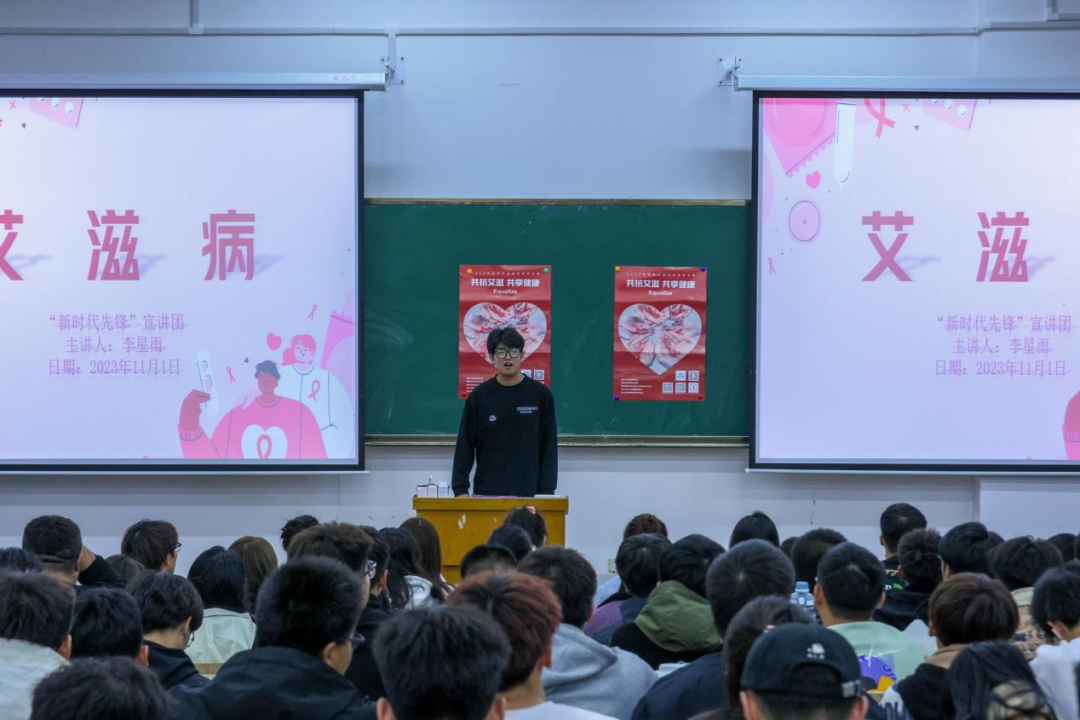 会上,“新时代先锋”宣讲团执行主席李星雨和周信飞进行宣讲,宣讲员为同学们介绍了艾滋病的概念、传播途径、防护措施和艾滋病的危害等知识。随后,宣讲团员详细介绍了如何预防艾滋病病毒,遏制艾滋病,提高自我保护能力。
