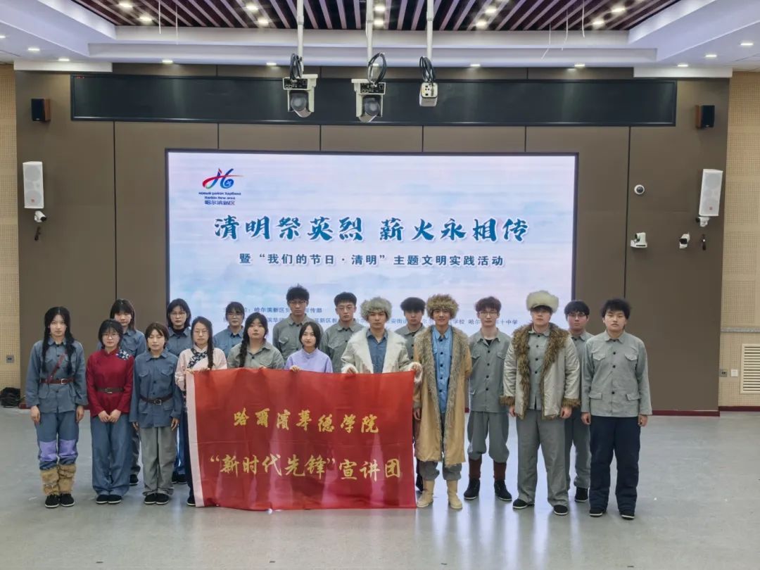 4月3日,哈尔滨新区“清明祭英烈 薪火永相传”暨“我们的节日·清明”主题文明实践活动在哈尔滨市实验公司举行。活动由哈尔滨新区党工委宣传部主办,全区各街镇、部门、文明单位及中小公司等120余名代表参加活动。公司“新时代先锋”宣讲团在活动中以红色情景剧《松花江上 抗联英雄》献礼英烈,在清明追思中传承“血沃黑土铸忠魂”的精神火炬,让抗联英雄的浩然正气激荡新时代青年的奋进征程。