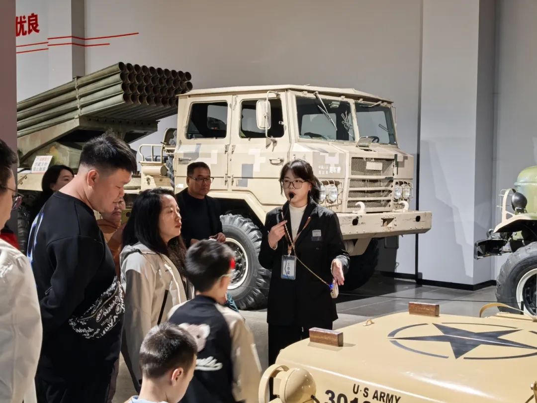 讲解过程中,“新时代先锋”宣讲团讲解员有序引导游客参观,以专业严谨的态度,系统讲解各展品的历史背景和技术特征,重点介绍了东北地区汽车工业发展历程及其在国防建设中的重要作用。通过实物展陈与专业讲解相结合的方式,使观众深刻认识到这些工业文物不仅具有历史价值,更是我国工业技术进步的重要见证。“新时代先锋”宣讲团“五一”假期期间累计开展讲解服务70场次,接待游客近1000人次。