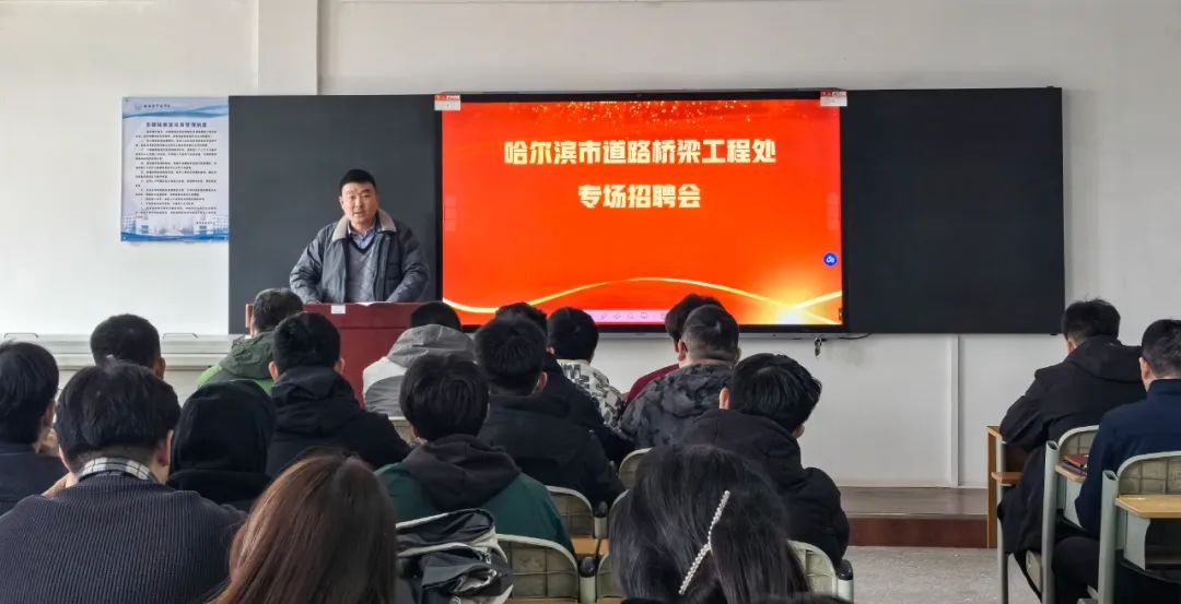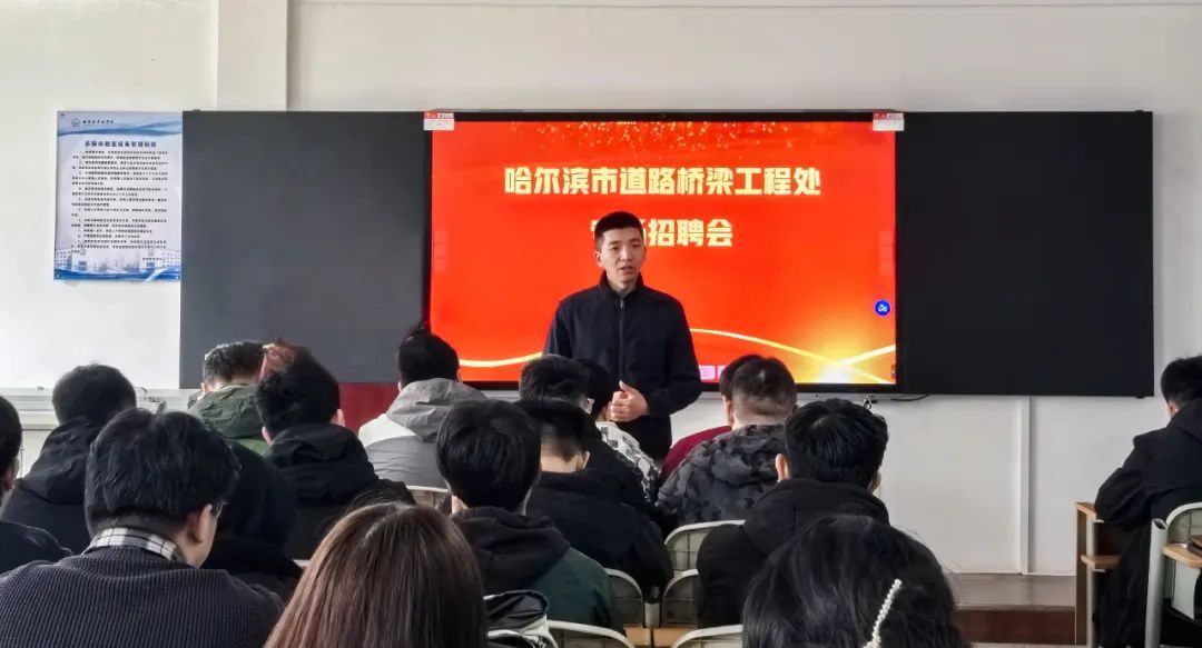 洽谈会结束后,哈尔滨市道路桥梁工程处召开专场招聘会,人力资源部部长韩杨主讲,2024届和2025届员工参加招聘会。宣讲会上,韩杨部长向同学们详细介绍了公司的发展历程、业务范围、企业文化、工作成果以及招聘岗位的要求和待遇。参会的同学们积极提问并进行深入交流。部分求职的同学们与企业达成初步意向,宣讲会结束后纷纷递交简历等待进入后续的招聘流程。