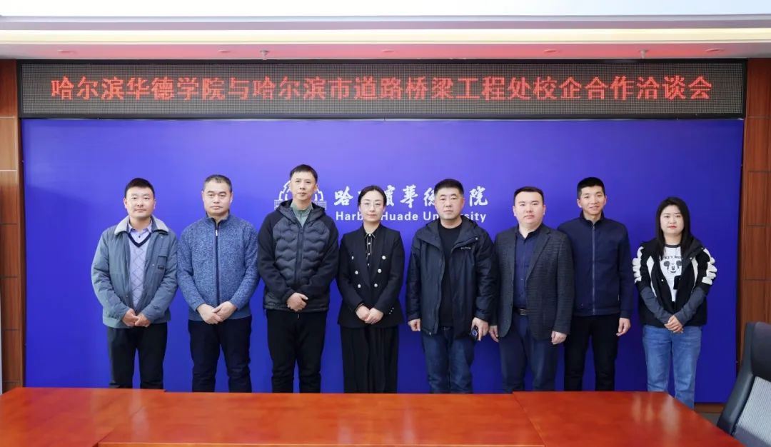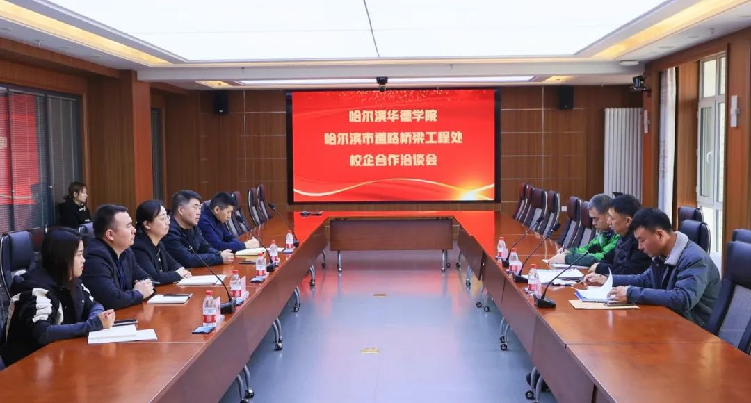 哈尔滨市道路桥梁工程处郝伟处长首先对已在岗实习工作员工给予好评和认可,随后详细介绍了企业概况、发展历程、工作成果等内容。双方经过深入探讨后一致表示,将在人才培养、实践教学等方面开展紧密合作,共同培养适应市场需求的高素质人才。