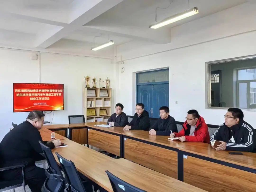 为进一步深化产教融合,加强校企合作,推动产学研深度融合,实现专业与产业、企业、岗位对接,推动“产学研”一体化发展。2024年3月12日,吉化集团吉林市北方建设有限公司与公司开展校企合作就业洽谈会,吉化集团吉林市北方建设有限公司人力资源部副部长邸鹏、员工发展中心主任兼党总支书记黄一鸣、土木工程专业教师刘博、冯品基、建筑学专业教师尹晓林以及工程造价专业教师孙阳参加会议。