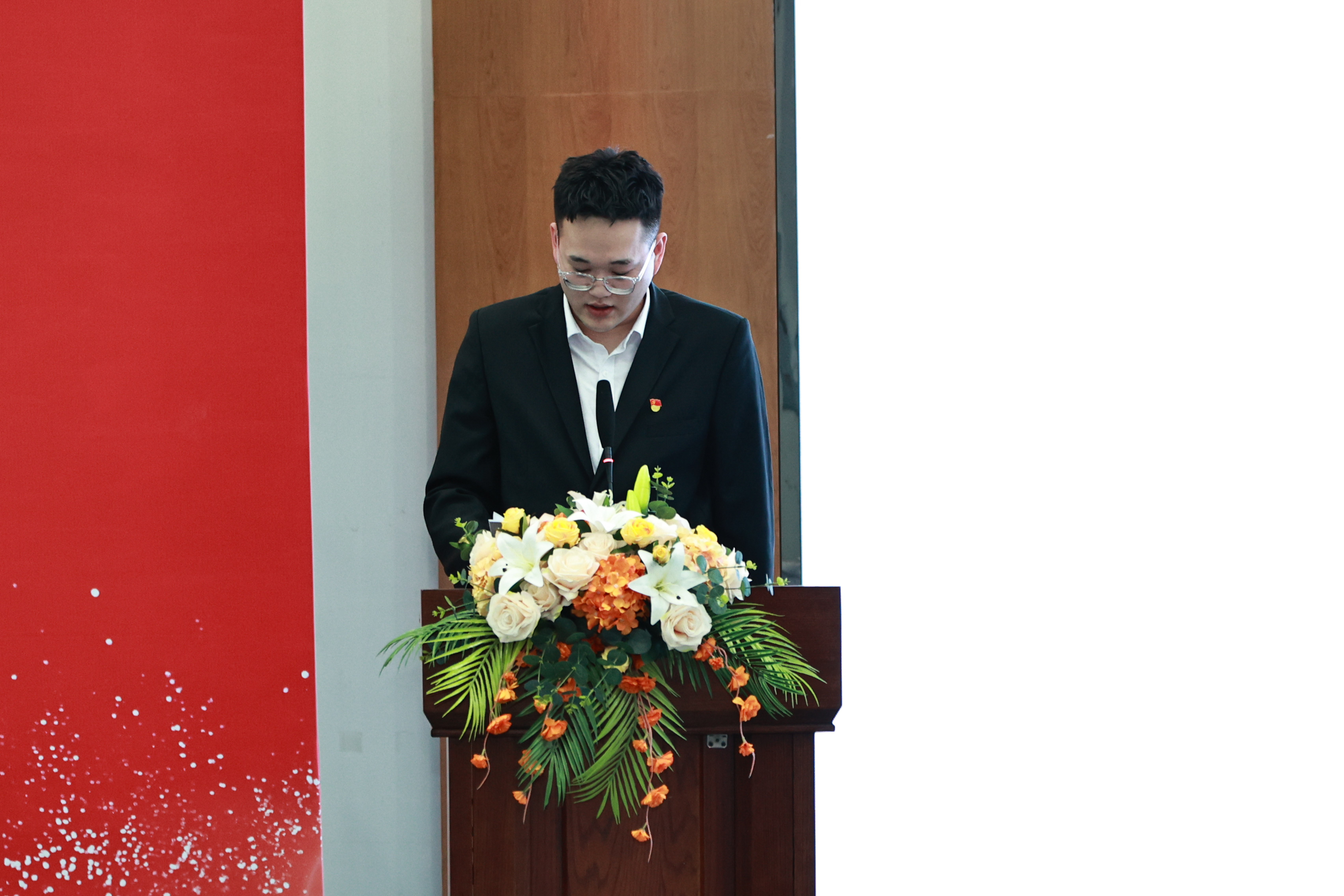 紧接着,交通运输系2103392班班长钟靖然作为员工代表上台发言。他分享了自己对实习的期待和看法,他的发言不仅激发了同学们的实习热情,也增强了大家的团队凝聚力。