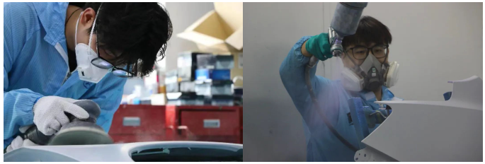 此次比赛分为喷漆前底处理、底漆、色漆、清漆等多项操作,比赛过程中,参赛者熟练使用漆面研磨机进行喷漆前底处理,精准使用喷枪喷涂底漆与色漆过程,每一位选手都有自己独特的手法,同时也展现出高超的技术水平。