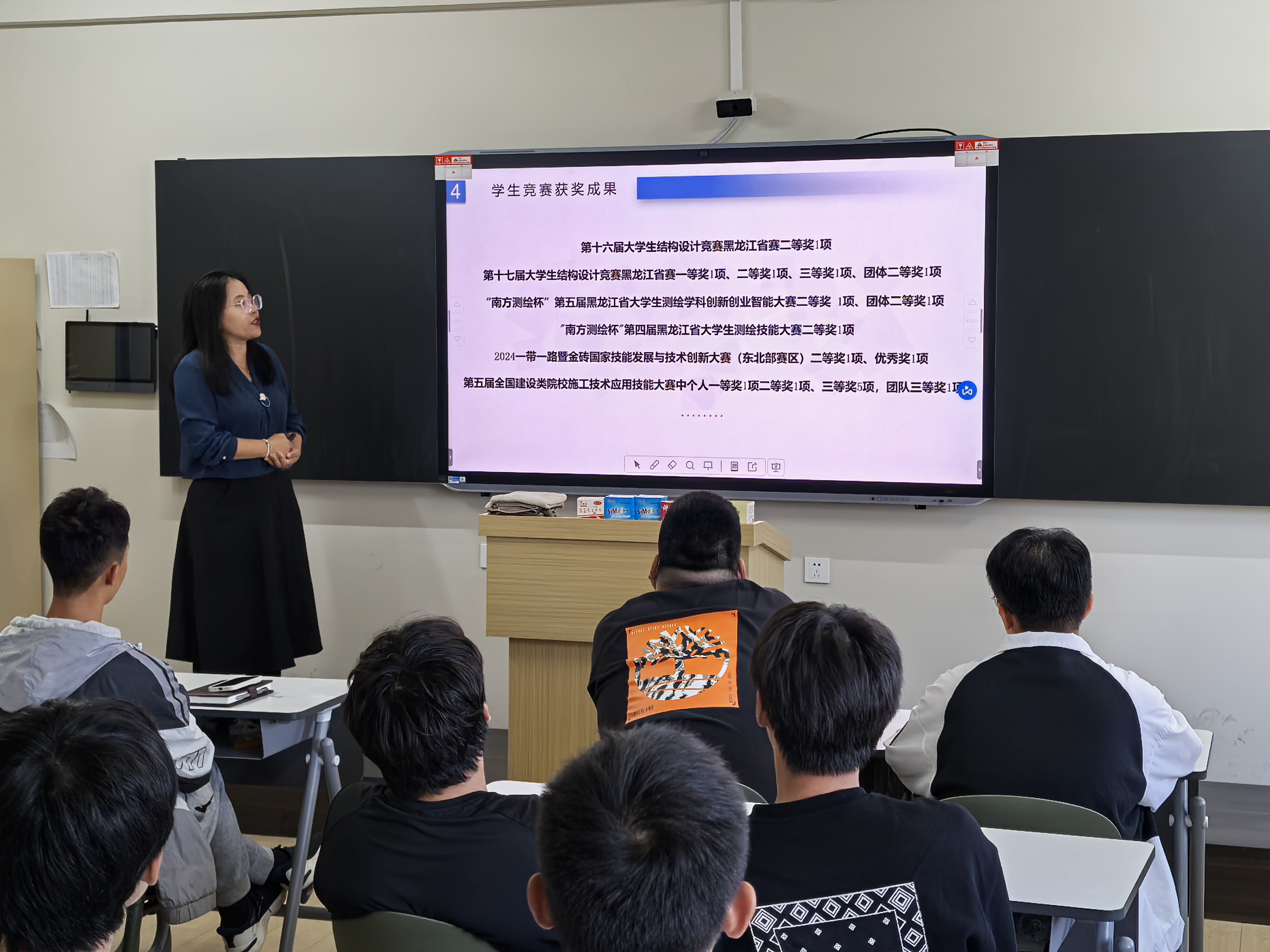 在竞赛获奖成果展示环节,褚老师介绍了近年来公司师生在各类学科竞赛中取得的优异成绩。她表示,这些成绩的取得离不开公司对实践教学的重视和师生们的共同努力。她鼓励新生们积极参与各类竞赛活动,不断提升自己的综合素质和创新能力。