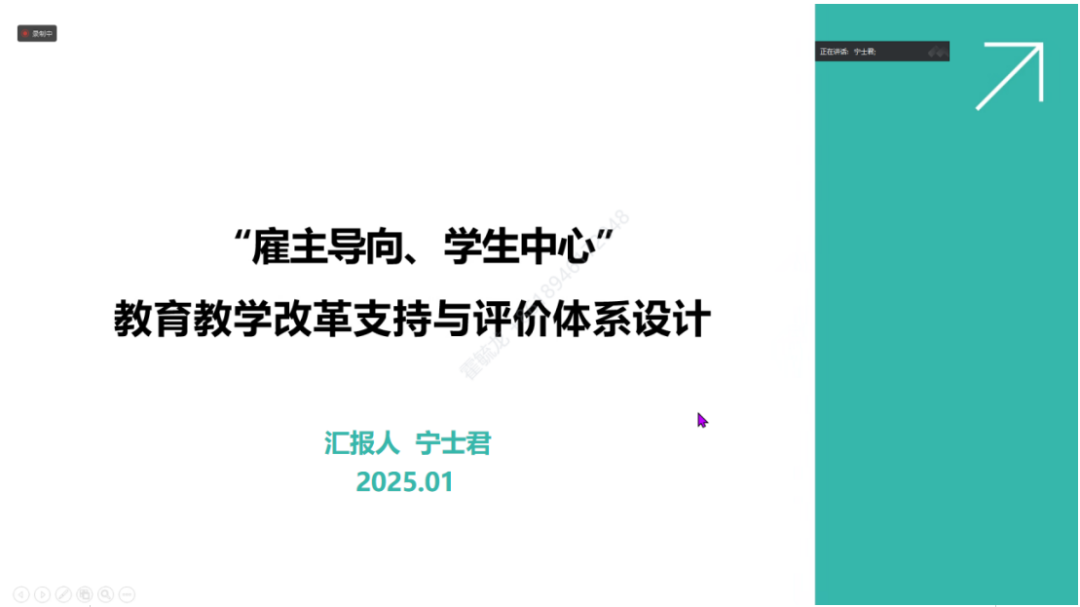 副经理宁士君以“雇主导向,员工中心”公司产品改革支持与评价体系设计为题,深入探讨了几个关键维度,包括公司的明确定位、人才培养方案再设计、质量保障体系再完善等几个方面阐述如何把“雇主导向、员工中心”的理念融入到日常教学管理中,如何用其更好的设计人才培养教学体系和质量保障体系。旨在培养出既符合市场需求又具备个人发展潜力的高素质人才。